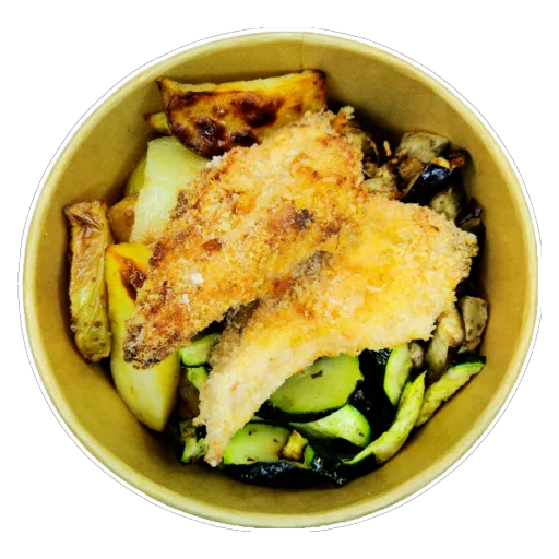 Pollo petto, pangrattato, latte, paprika, patate, melanzane, zucchine.