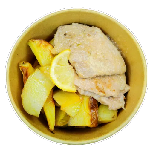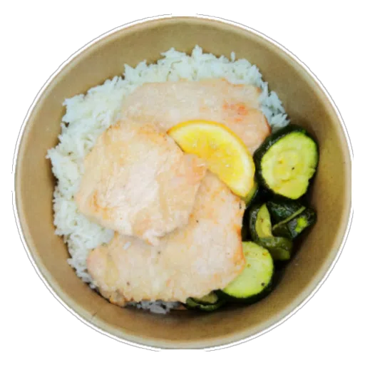 Lonza di maiale, limone, maizena, riso basmati, zucchine al forno.