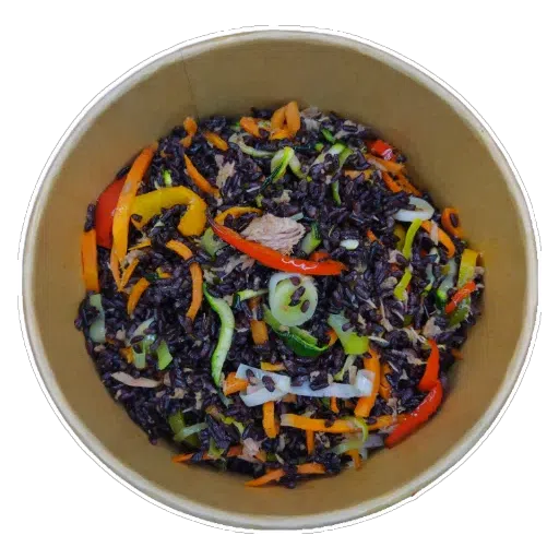 Riso Venere, porro, zucchine, peperoni, carote, tonno sott'olio