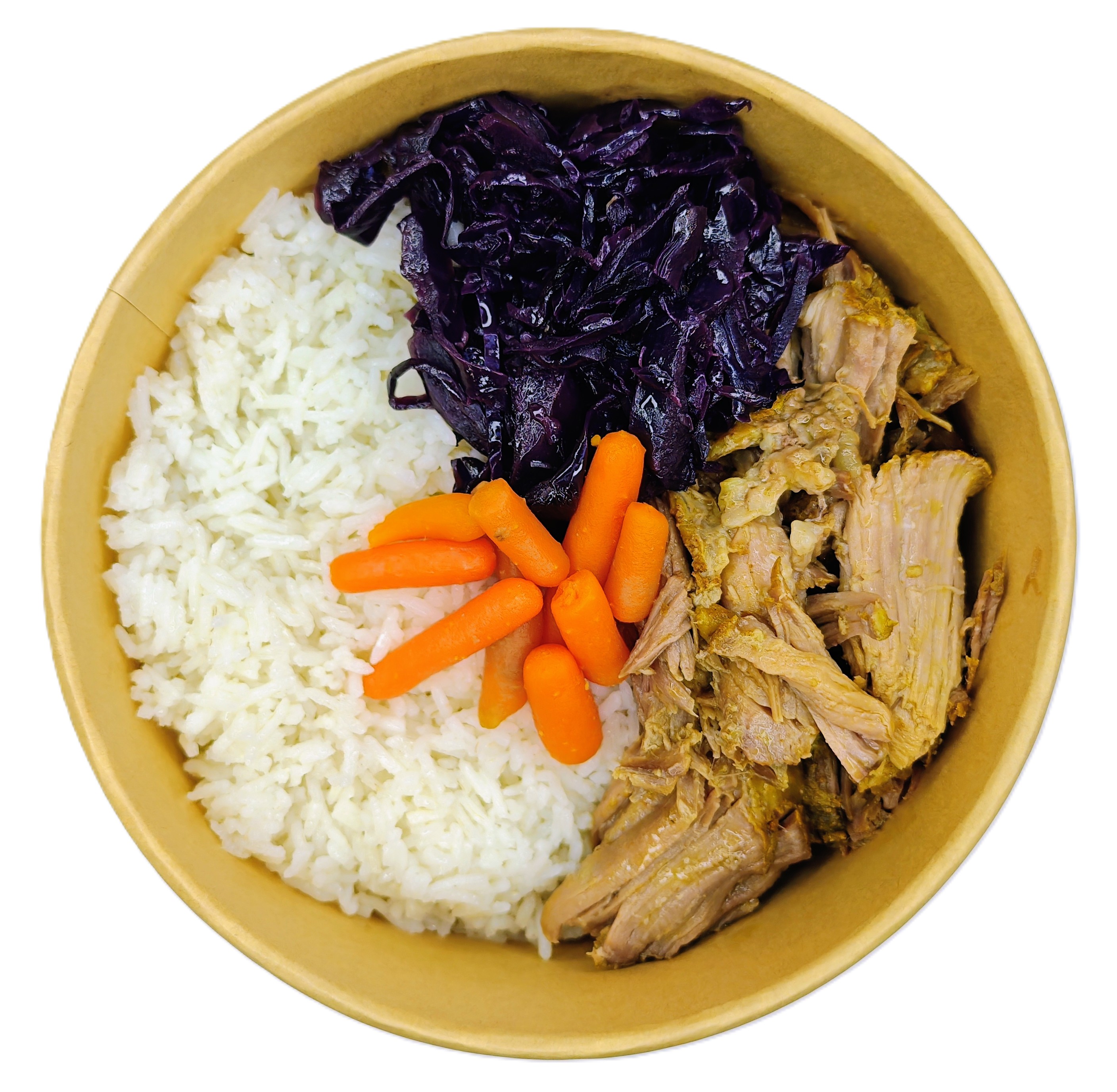 Riso Basmati, Coppa di maiale, Cappuccio viola, Carote baby.