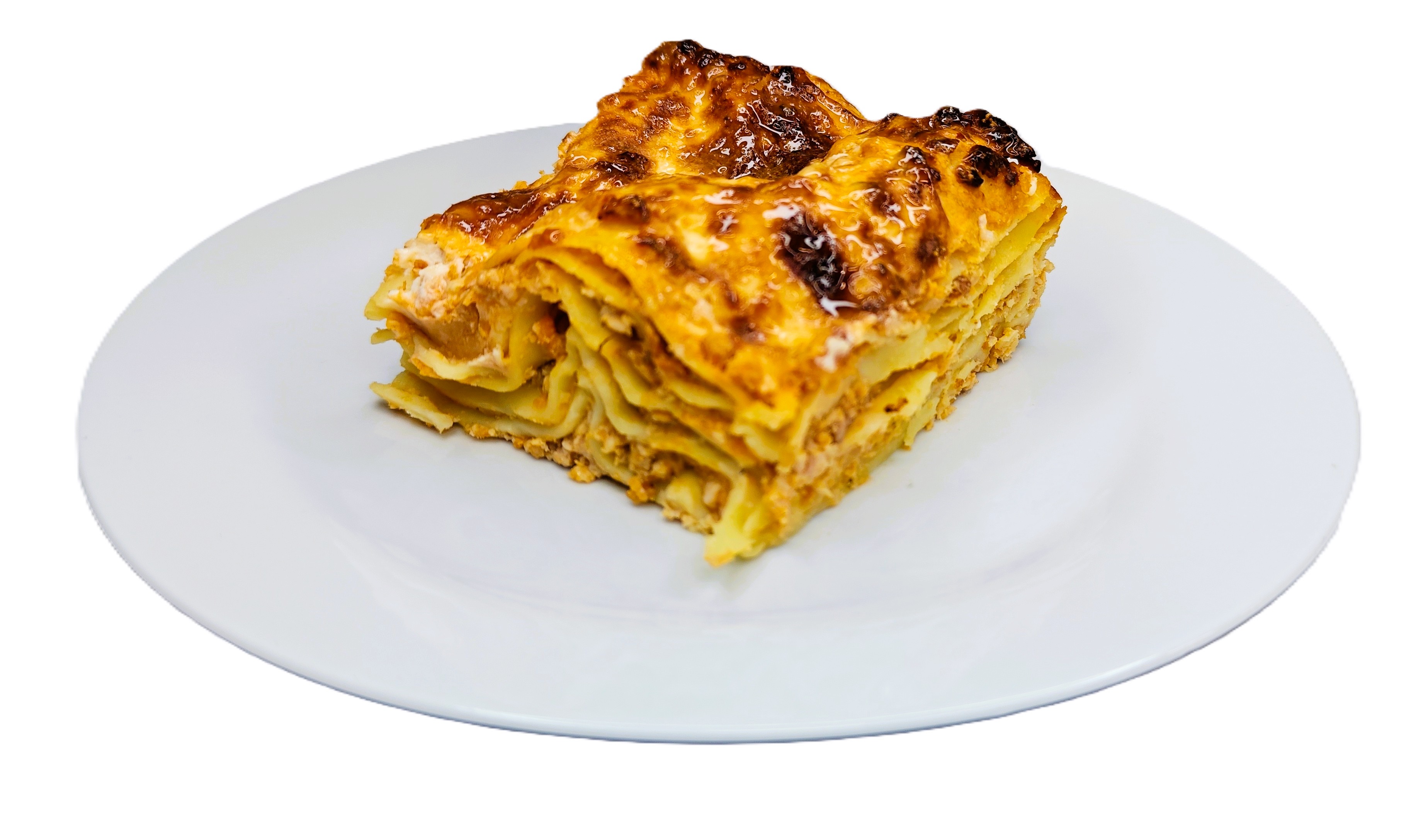 Pasta sfoglia, ragu Bolognese, besciamella, parmigiano, salsa pomodoro.