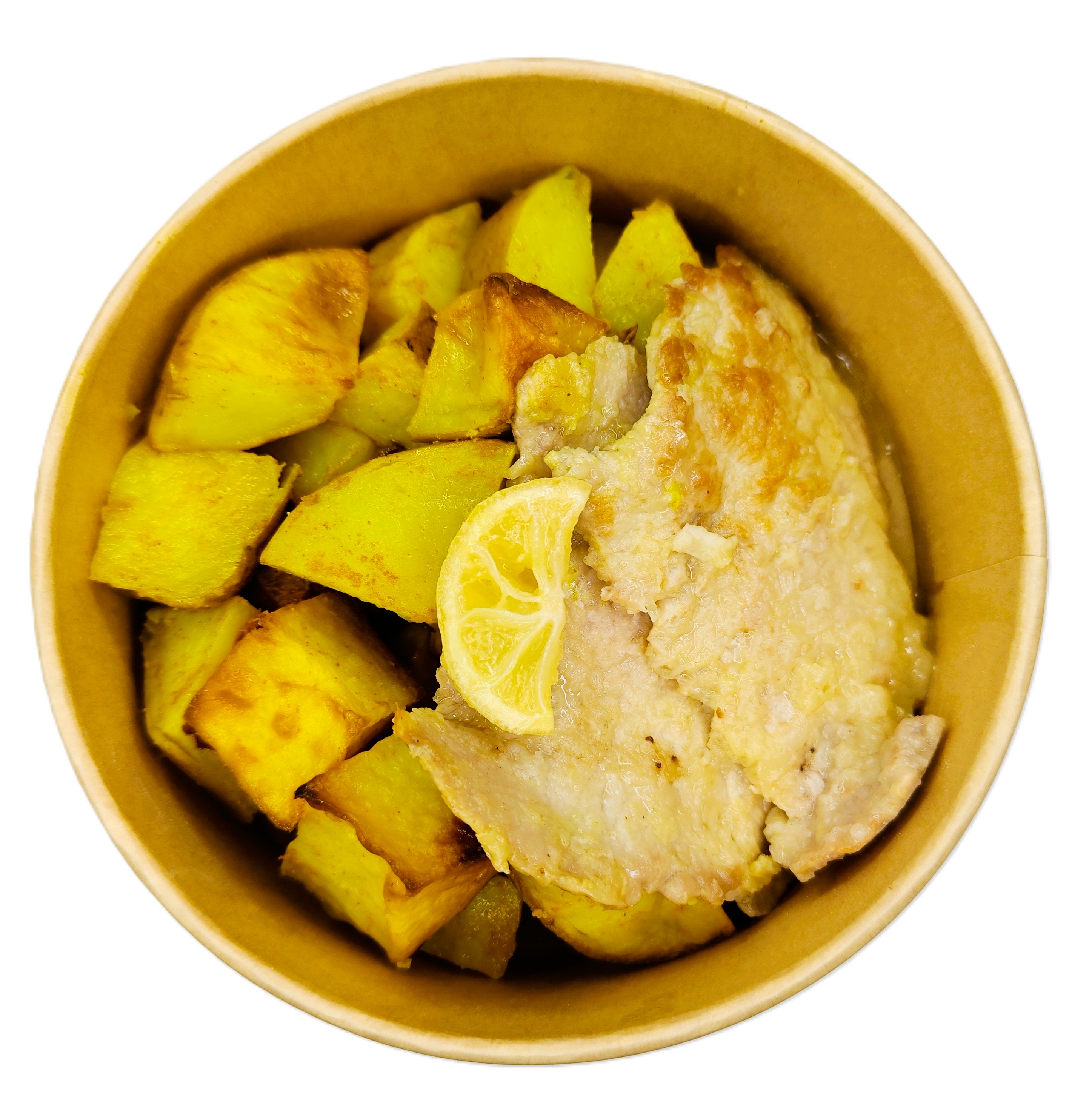 Lonza di maiale, limone, maizena, patate al forno.