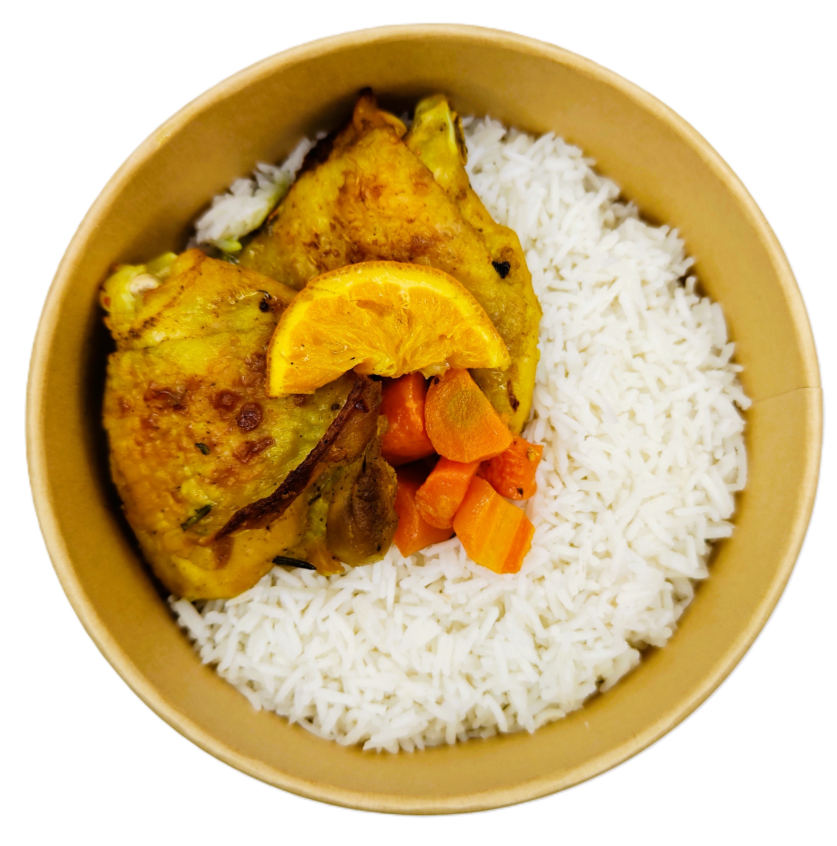 riso basmati, pollo, carote, zucchine, piselli.